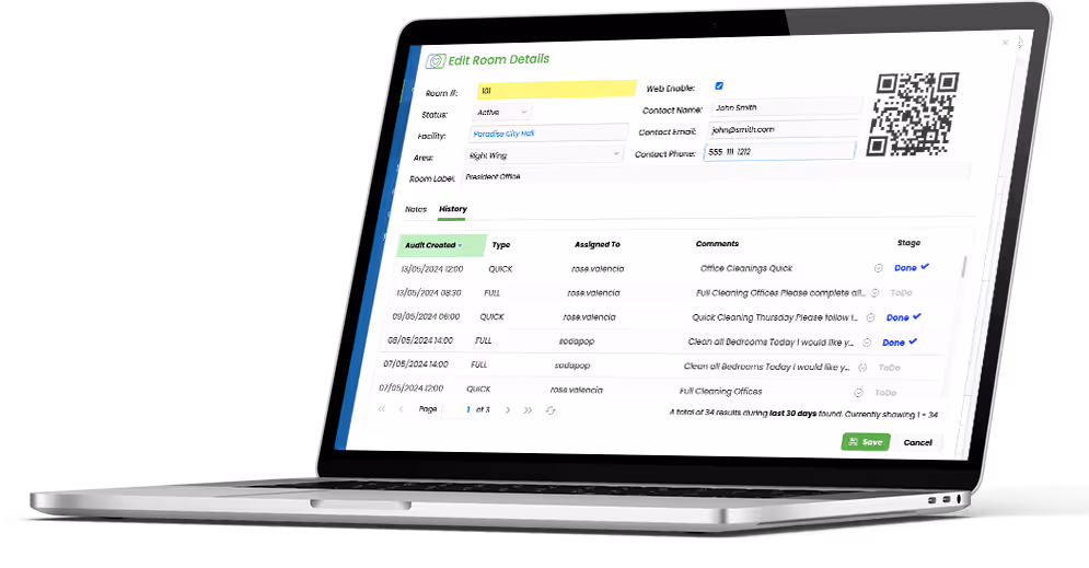 Allow your team to work autonomously and save time by quickly scanning the QR code in each room to track their activities for the day. With cleaning schedules, project checklists, notes, and a history of past cleanings in one place, your team knows exactly what they need to accomplish and can work at their own pace.