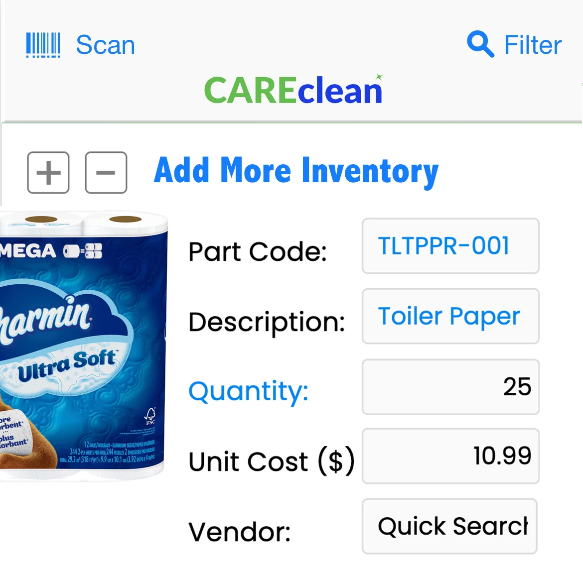 Yes! Know exactly what inventory levels you have on hand at any time through CareClean's mobile app or desktop interface. Track cleaning supplies, toilet paper, toiletries and more, and get reminders of minimum re-order levels so that you never run out of stock when you need it most. You can also keep a history of where the stock is being used and how much money you spend with a particular supplier.